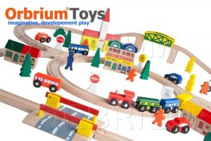 8. 100 Piece Obrbrium Toys Triple-Loop Wooden Train Set by Orbrium